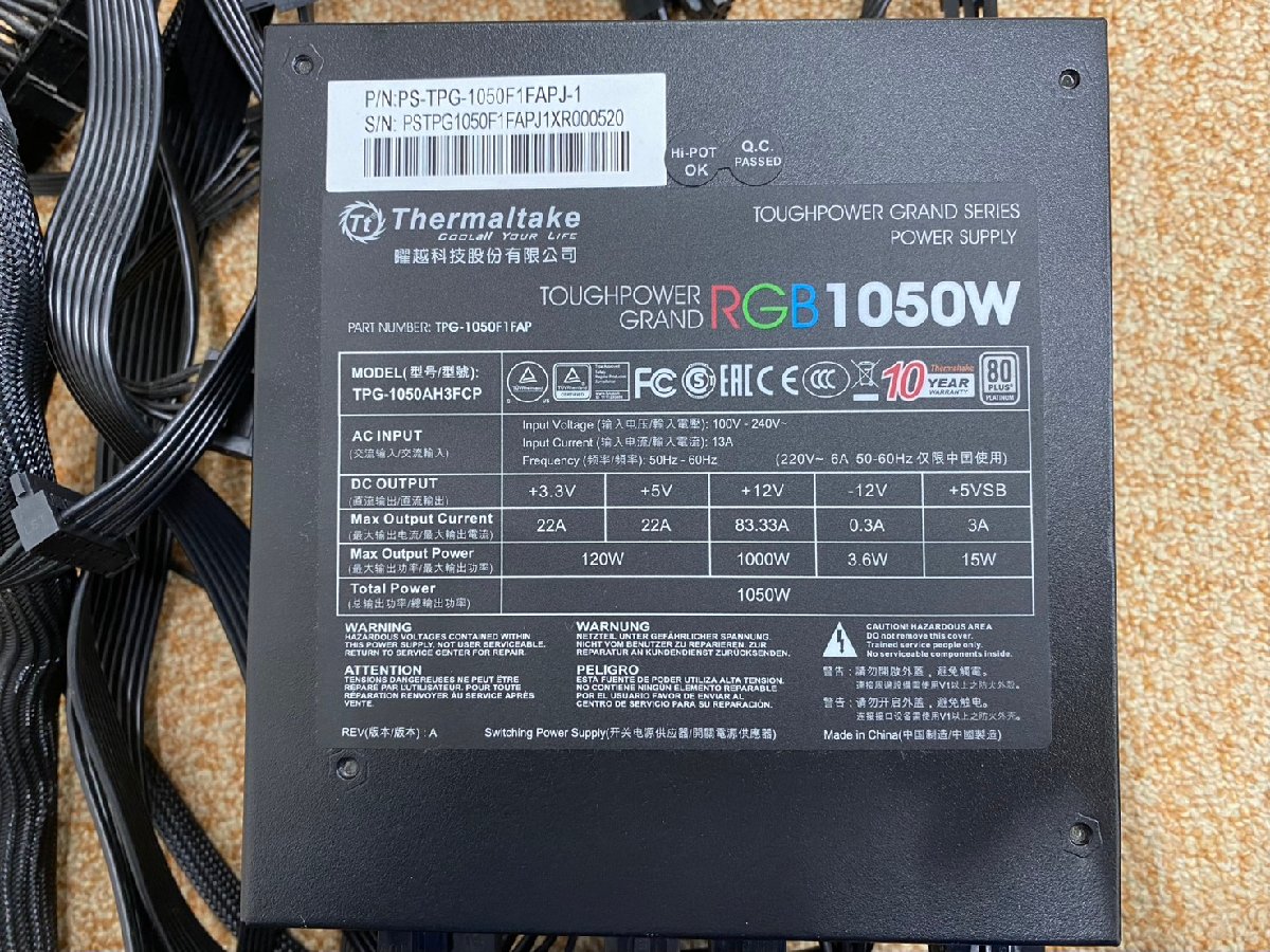 Thermaltake Toughpower Grand RGB 1050W Platinum PS-TPG-1050F1FAPJ-1 [Black] 中古品【動作確認済み】